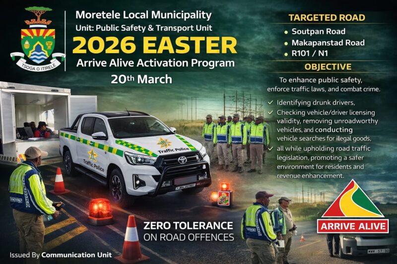 The Moretele Local Municipality is located strategically to join four provinces, namely North West, Gauteng, Mpumalanga, and Limpopo. Moretele is the Setswana name for a river that runs through the area, namely Noka ya Moretele (the Moretele River). The Municipality comprises 26 wards, which are made up of 74 villages and plots.