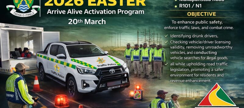 🚨 MORETELE LOCAL MUNICIPALITY SUCCESSFULLY IMPLEMENTS EASTER ARRIVE ALIVE ROADBLOCK OPERATION Moretele Local Municipality, through its Public Safety & Transport Unit, successfully conducted the 2026 Easter Arrive Alive Activation Roadblock Programme across key routes including Soutpan Road, Makapanstad Road and the R101. The operation was...Read More