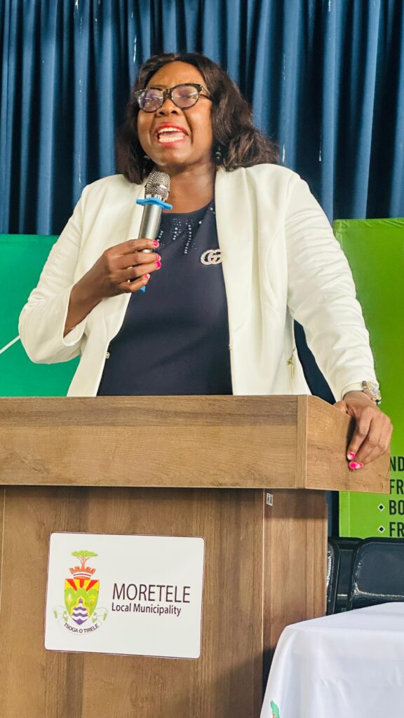 Dignitaries present included Moretele Mayor, Hon. Cllr Masango George Manyike; Hon. Speaker, Cllr Freda Mapela; Special Programmes Unit (SPU) Portfolio Chairperson, Hon. Cllr Mashudu Mphaphudi; IDP and PMS Chairperson, Hon. Cllr Francinah Tsoku; Finance Chairperson, Hon. Cllr Charles Pete; and Sports, Arts, Culture and Education Chairperson, Cllr Morake Molefe. Other attendees included Ward 26 Cllr, Hon. Mokone, educators, subject advisors, area managers, and School Governing Bodies (SGBs) from Moretele LEO, as well as Kgosi Sekhupi Nawa, Queen Hope of Baphuthing baga Nawa, and Prince Maloka.